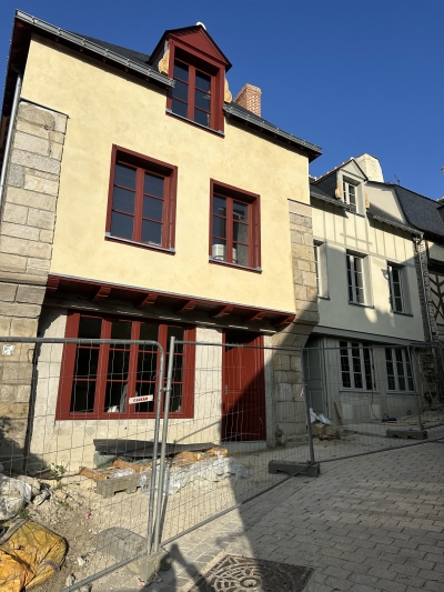 Situé au cœur du centre historique de Josselin, ce projet porte sur la reconstruction de cinq immeubles anciens gravement endommagés à la suite d’un incendie. Implanté en secteur protégé, soumis aux prescriptions de l’Architecte des Bâtiments de France, l’intervention a nécessité une approche à la fois rigoureuse et respectueuse du patrimoine existant.