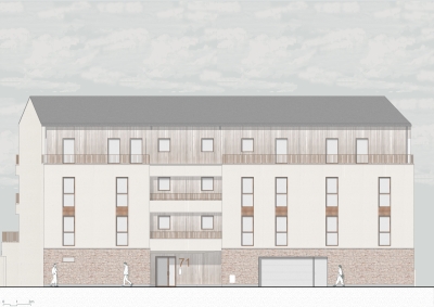 L’écriture architecturale, sobre et soignée, s’appuie sur des matériaux pérennes et une composition équilibrée des façades, contribuant à l’identité du projet tout en s’intégrant harmonieusement dans son contexte.